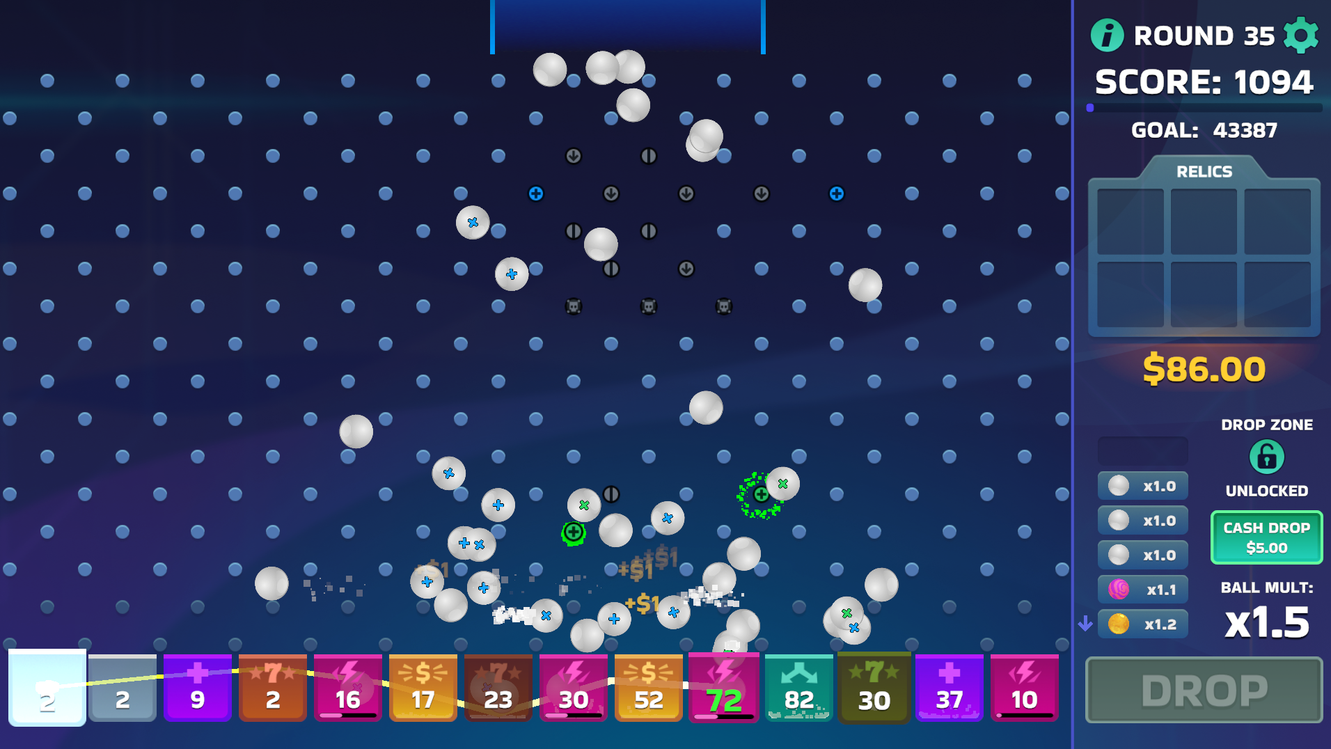 - Cash pickups have some nifty floating text when collecting coins, gold balls hit a bucket or any balls hit a gold bucket
